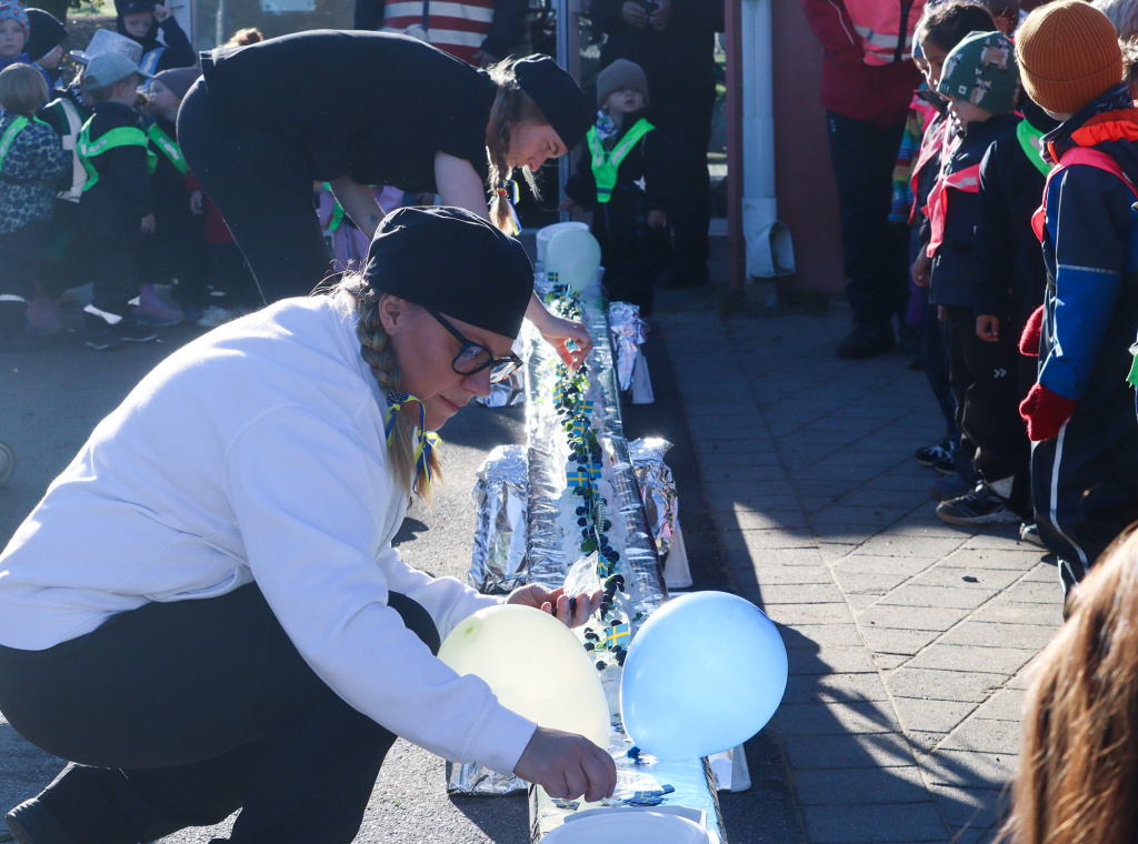 Firandet började med att kökspersonalen rullade ut en fem meter lång rulltårta. Samtliga avdelningar var samlade ute på gården och förskollärare Annelie höll ett kort tal.