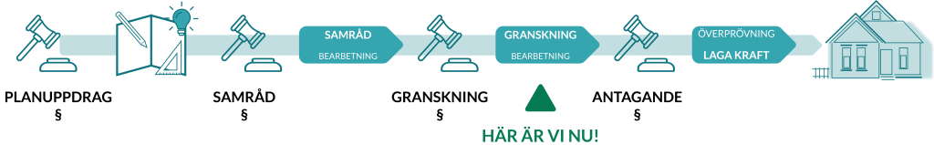 | Den som inte kommer in med skriftliga synpunkter senast under granskningstiden kan förlora rätten att senare överklaga kommunens beslut att anta detaljplanen. |